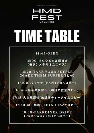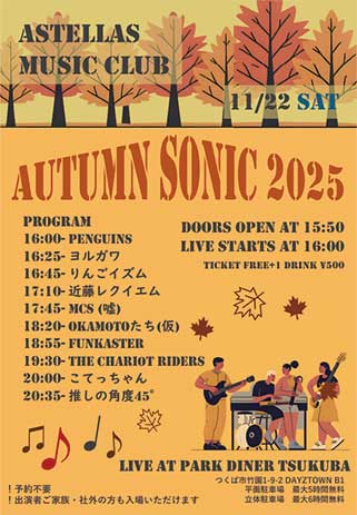 open/start 14:45/15:00 adv/door ¥500+1drink¥500 / 学生1…